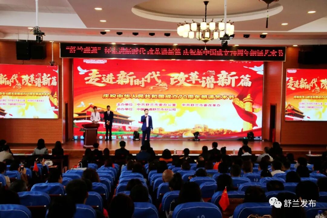 9月20日,舒兰联通杯“走进新时代改革谱新篇 ”庆祝新中国成立70周年朗诵艺术节在市进修学校学术报告厅举行。市委常委、办公室主任王新玉参加活动并致辞。