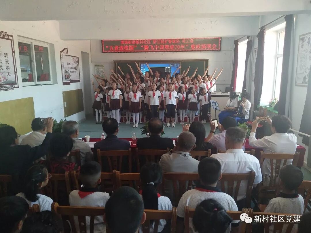 整场演出内容丰富,表演精彩。关工委派出的演员表演了合唱 《我和我的祖国》;男女声二重唱《祝福祖国》、《不忘初心》;集体诗朗诵《腾飞中国 辉煌70年》等,精彩的演出获得师生点赞,也表达出关工委“五老”同志关心关注下一代,愿为新时代奉献余热的热情。七小的学生也精心编排节目,为参加活动的长辈们奉上诗朗诵《我和祖国共腾飞》;大合唱《唱支山歌给党听》;并与五老人员大手牵小手同台演唱《我们是共产主义接班人》,传播了时代正能量,抒发年轻一代继承红色血脉,追梦新时代的情感。