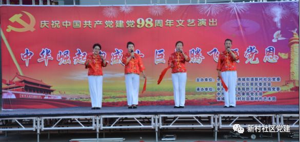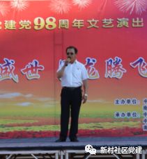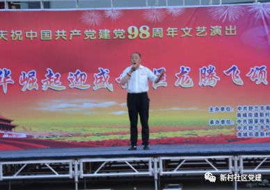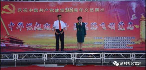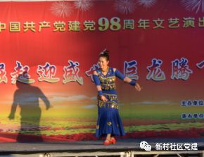 2019年7月20日晚六点,新村社区党委、新村社区居民委员会携同税务局党委、气象局党支部、新村社区新时代艺术团在恒亚广场举办庆祝建国70周年,建党98周年“中华崛起迎盛世 巨龙腾飞颂党恩”主题歌舞演出。