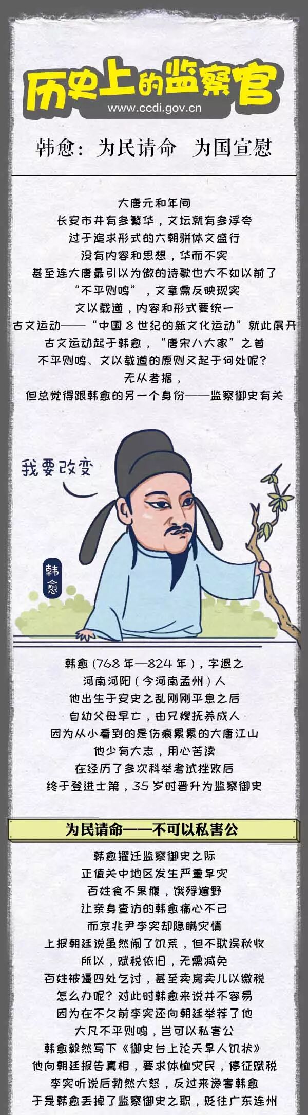 历史上的监察官 | 韩愈:为民请命 为国宣慰
