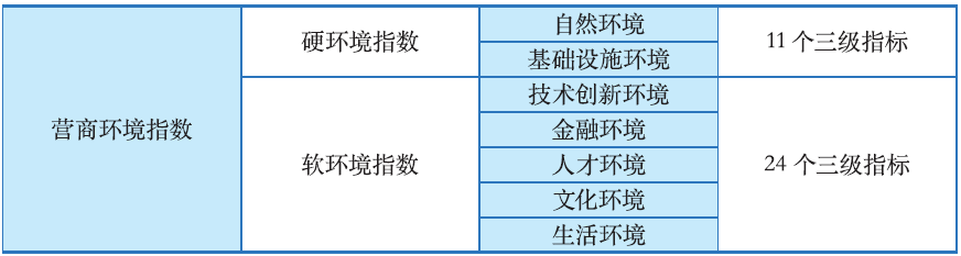 7个二级指标:自然环境、基础设施环境、技术创新环境、人才环境、金融环境、文化环境和生活环境;