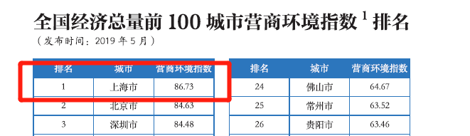 《2019中国城市营商环境指数评价报告》日前出炉。报告显示:根据2019中国城市营商环境指数评价结果,排名前十的城市为上海、北京、深圳、广州、南京、武汉、杭州、天津、成都、西安。